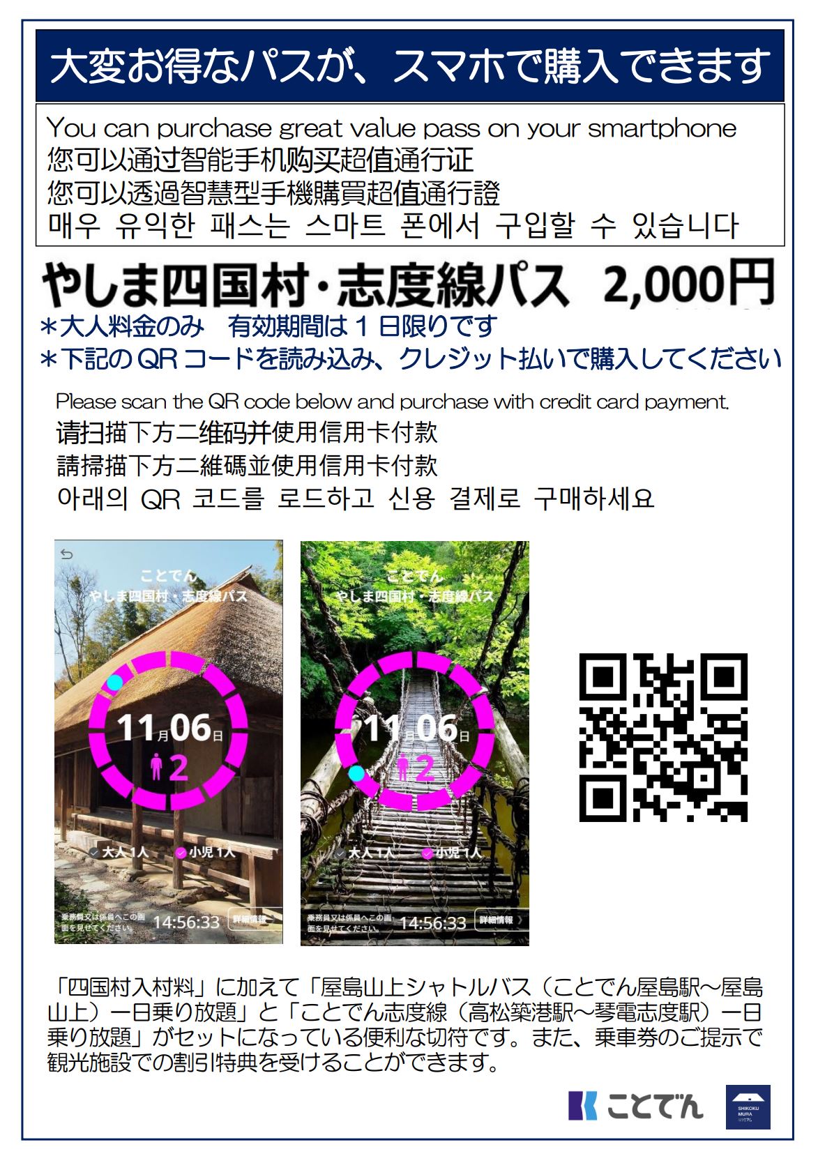 お得で便利な「やしま四国村・志度線パス」がスマホで購入できます