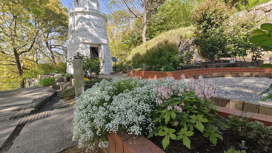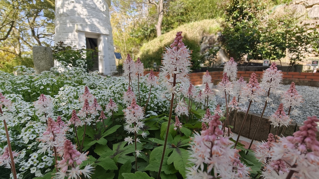 旧大久野島灯台の近くにある花壇では1月にご紹介したスーパーアリッサムの隣で、小さなピンクの花が咲いていました。