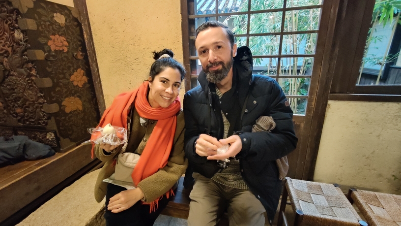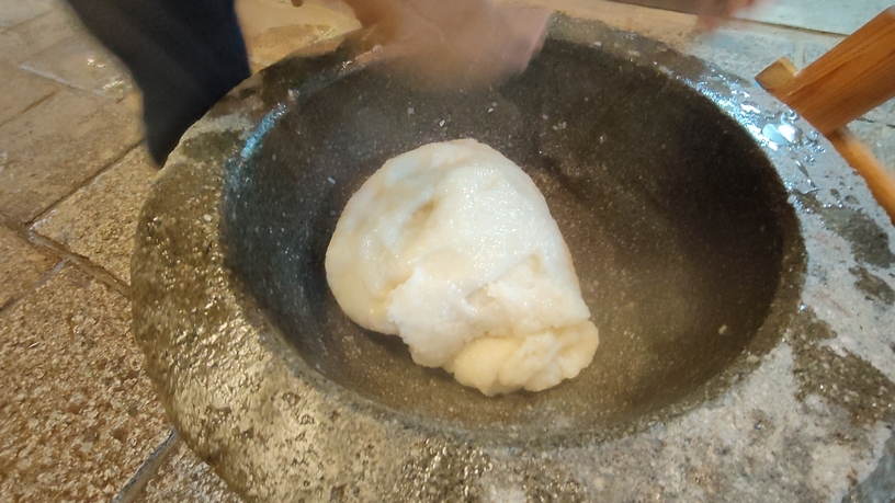 フランスからお越しになったお二人は餅つきを体験するのはもちろん初めてのことだそうですが、中に餡(あん)の入ったつきたてのお餅はとてもおいしく、旅のいい思い出になったとおっしゃってくださいました。