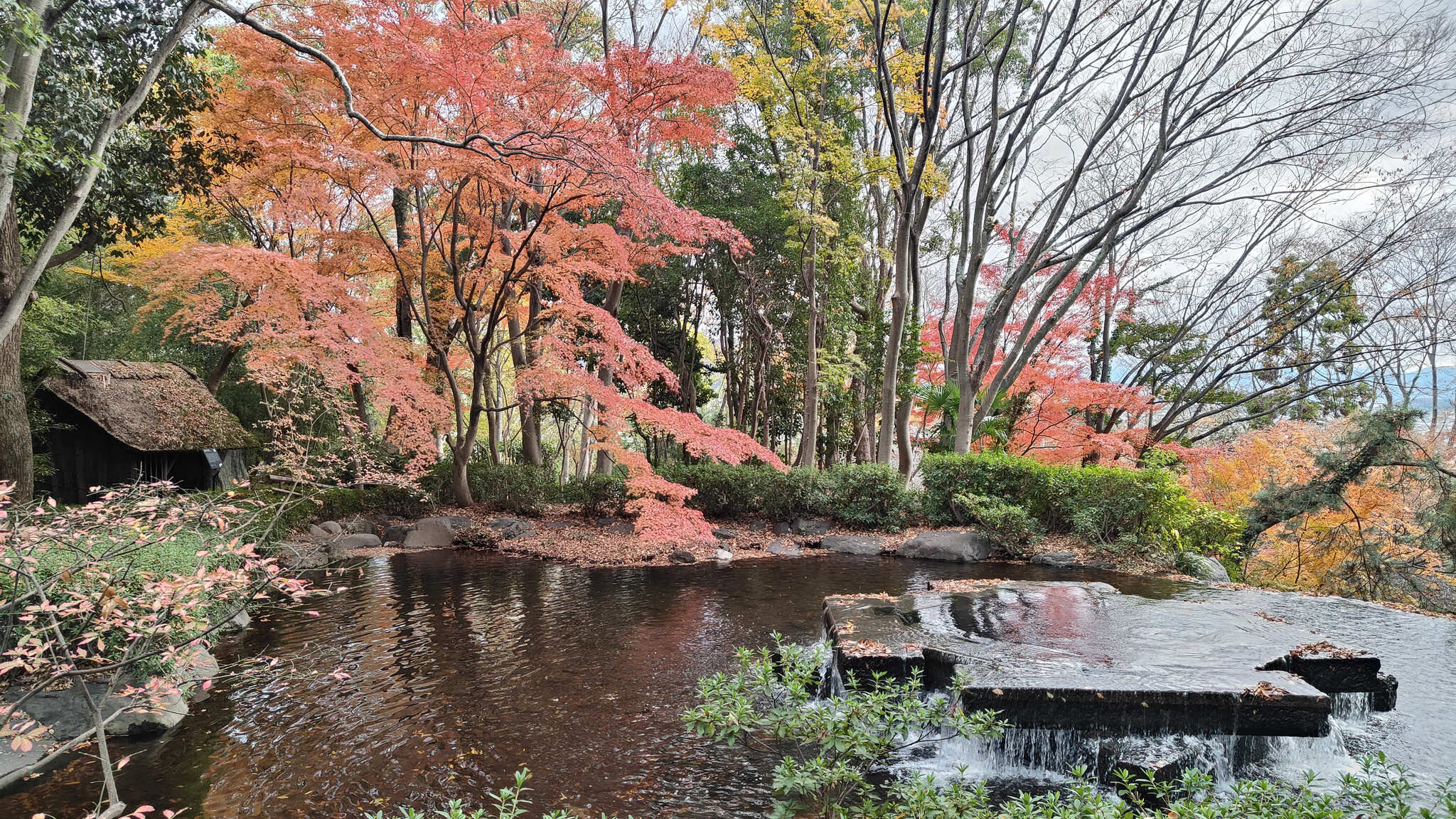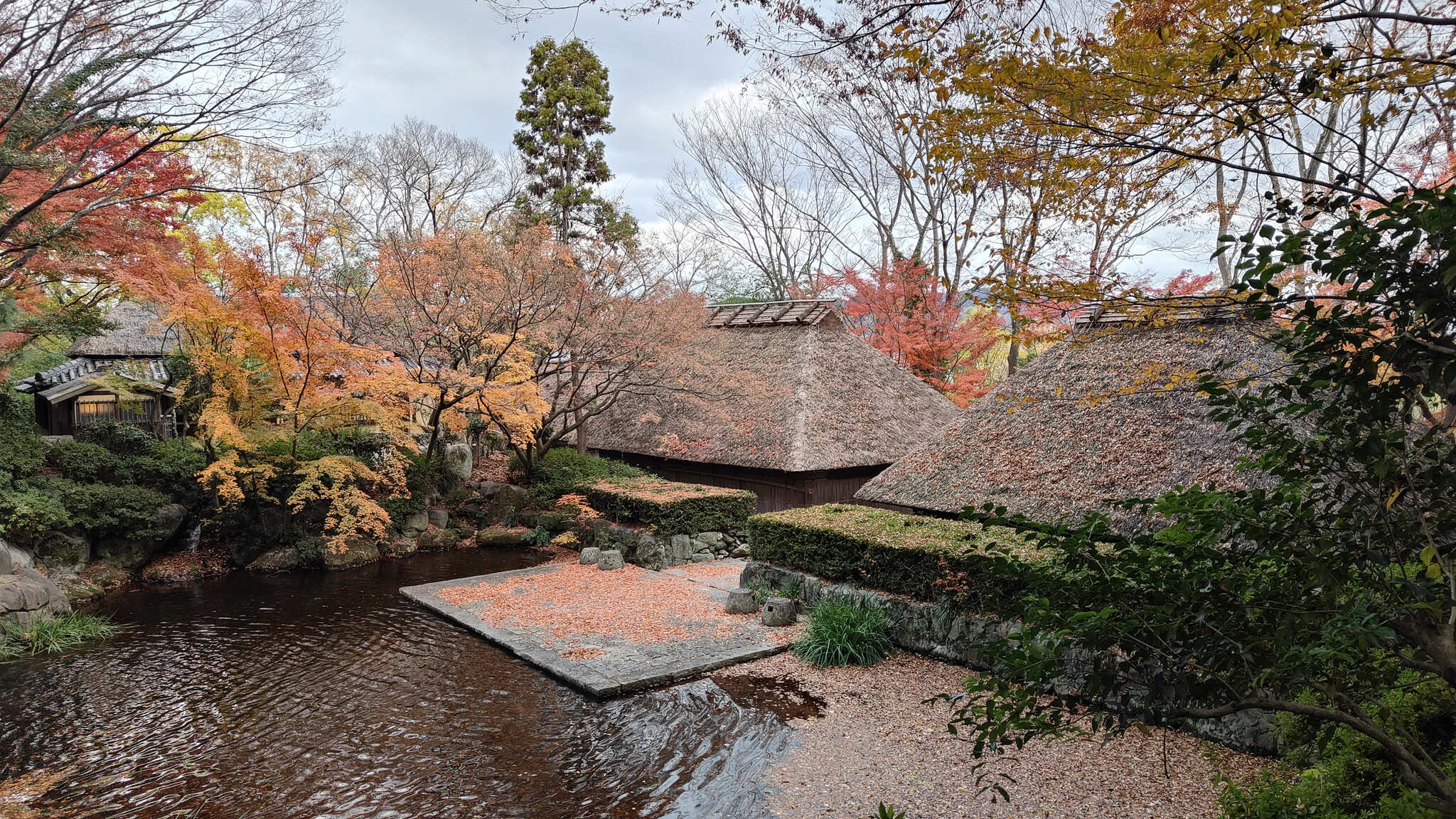 朝夕だけでなく日中もだいぶ冷え込みを感じるようになりました。四国村の紅葉も順調に進んでいましたが、12月3日の強風でかなり葉が落ちてしまったため、今週末が最後の見ごろのように思います。