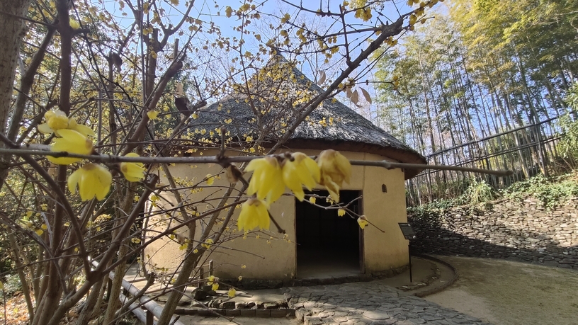 先日は河野家住宅前で咲くロウバイをご紹介しましたが、冨木田家砂糖しめ小屋の横でも沢山咲いています。