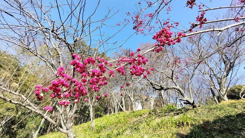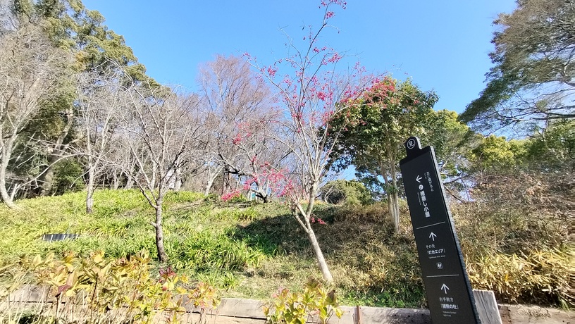 この場所は毎年、ウメとスイセンの花をお楽しみいただける場所ですが、今年はバリアフリー通路の整備工事を行っているために一部おはいりいただけないエリアがあります。