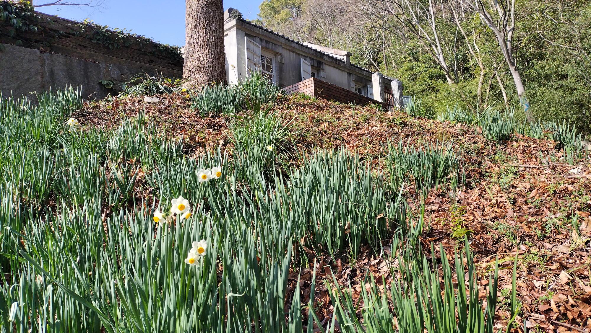 灯台エリアの入り口でもスイセンが咲きますが、日当たりの良い場所にある数輪が咲き始めました。
