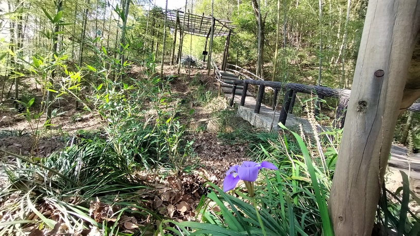 灯台エリアから雨降使(アメフラシ)に至る散策路では、寒アヤメが一輪咲いていました。冬に咲く健気さから、その花言葉には「希望」「信頼」「信じる者の幸せ」「勇気」などがあるそうです。