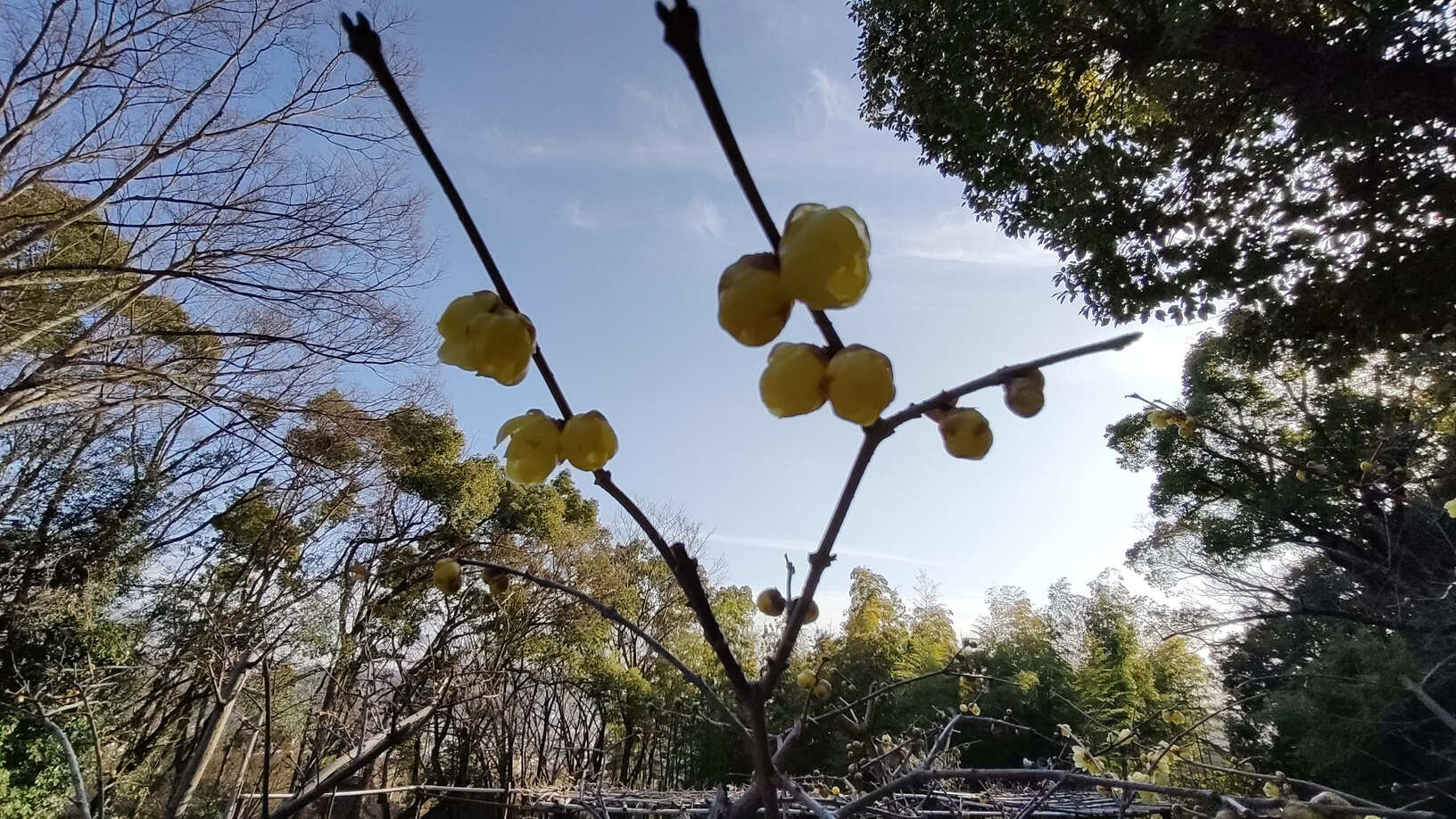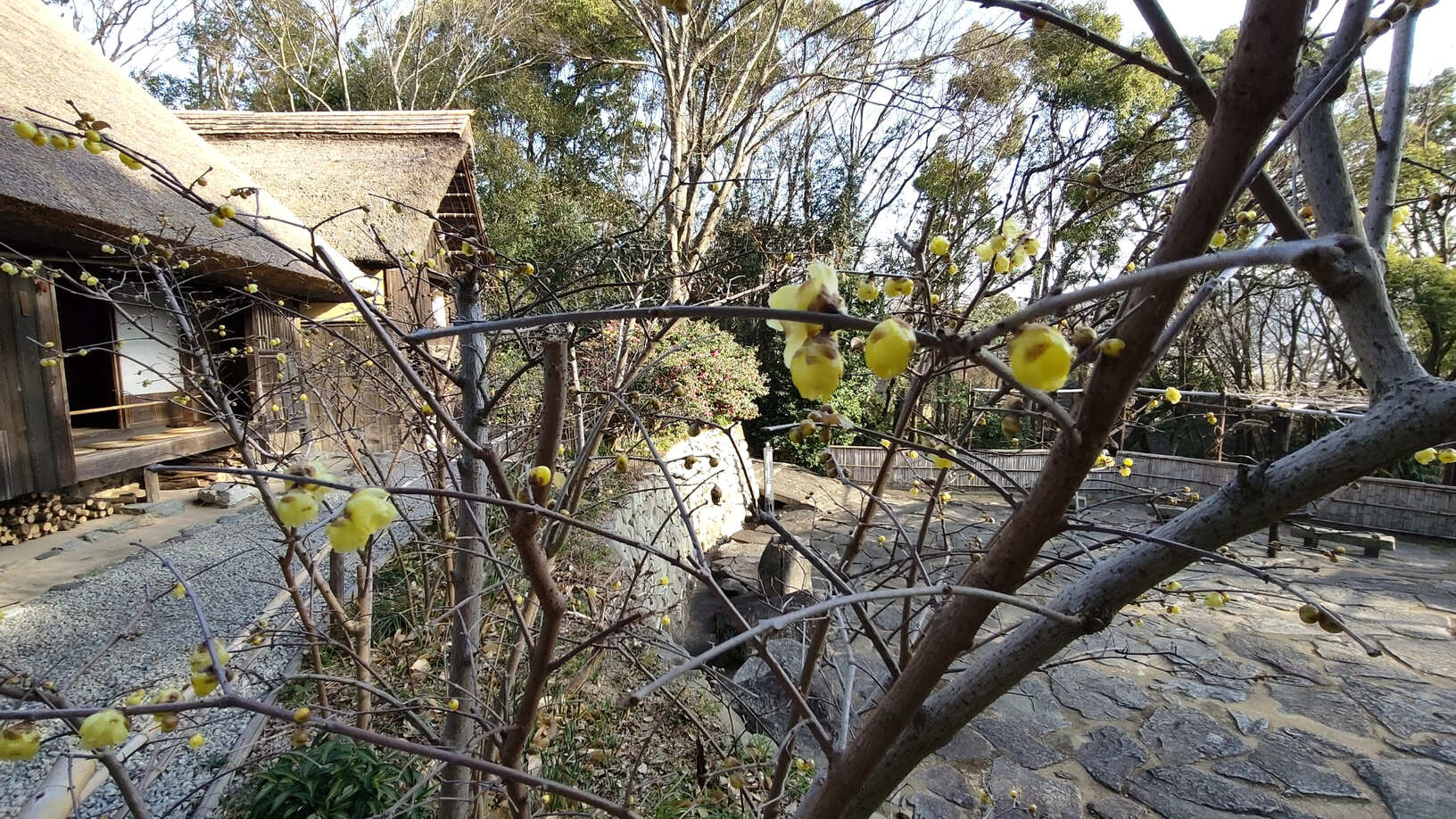 河野家住宅前ではロウバイが満開になり、甘い優しい香りを漂わせています。