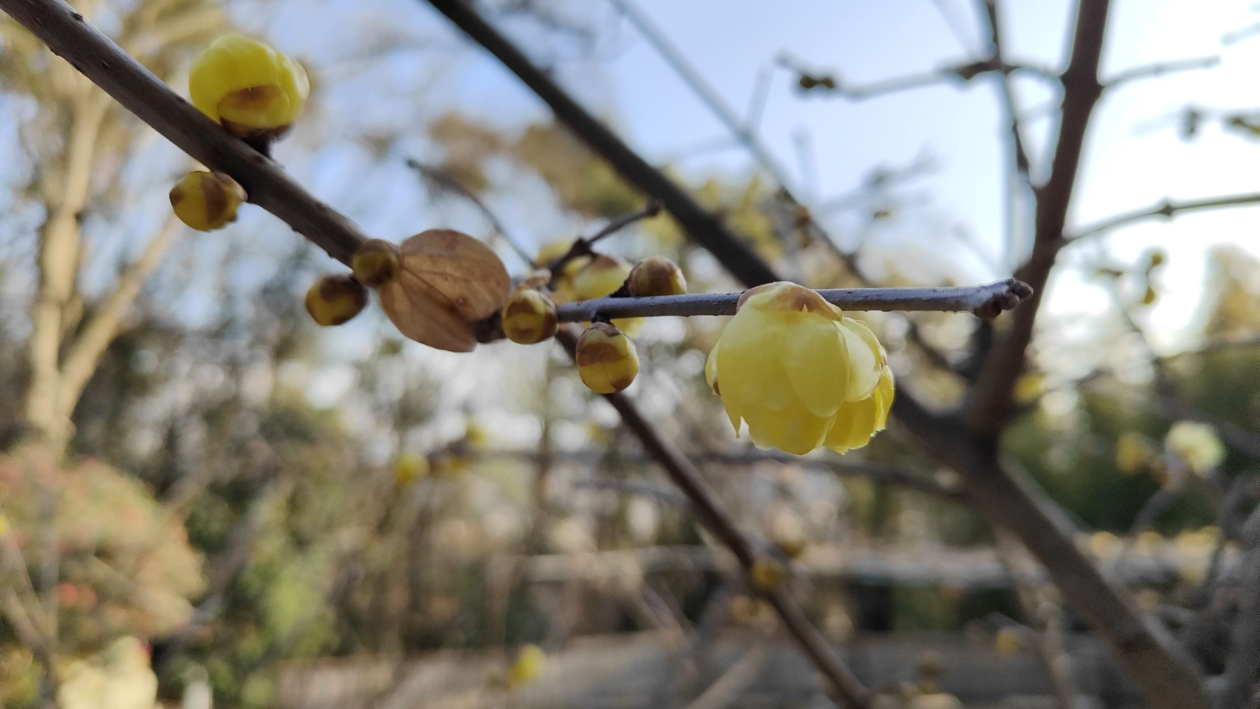 ロウバイ(蝋梅)の名前の由来は、まるでロウ細工のような梅に似た黄色い花を咲かせることからついたという説や、陰暦の12月にあたる蝋月(ろうげつ)に開花するためという説があります。