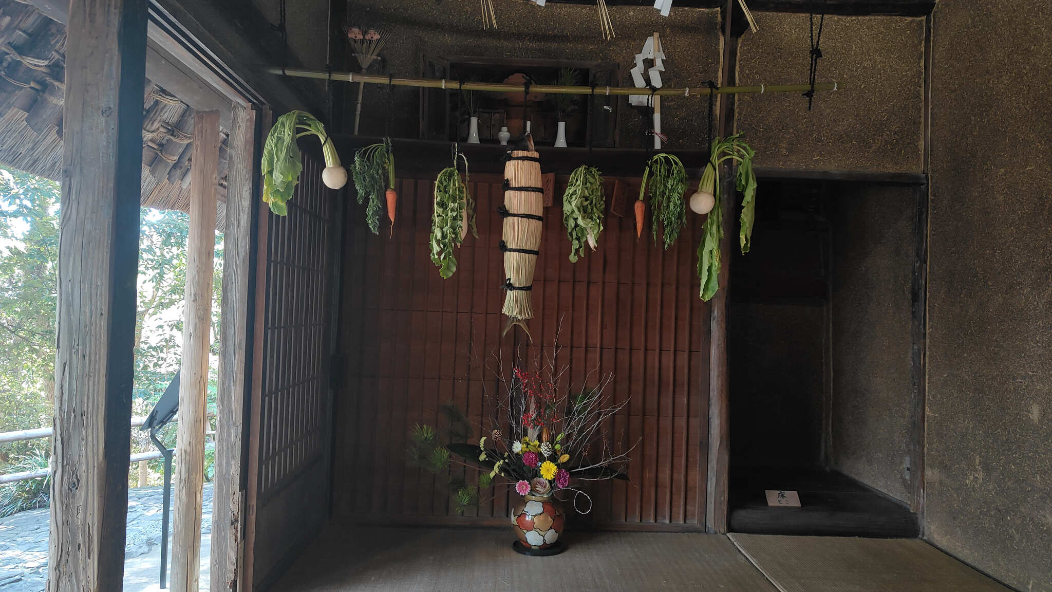 村内の古民家は、それぞれの建物が移築前に建っていた地域で行ってきた伝統的なお正月飾りで装っています。